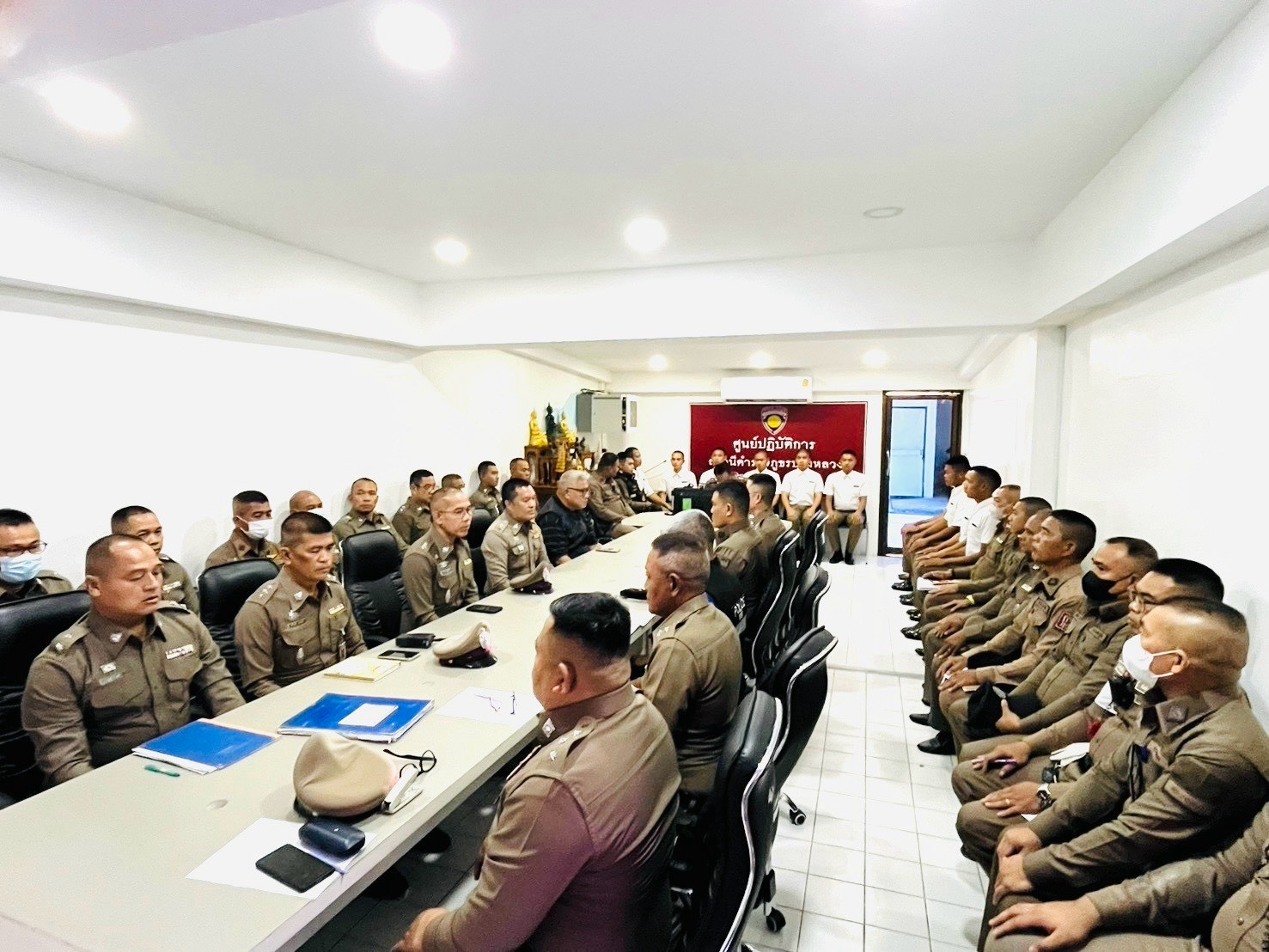 หลังเสร็จสิ้นการประชุมดำเนินการรวมแถวตรวจเครื่องแบบการแต่งกายและทรงผมให้เป็นไปตามระเบียบที่ ตร.กำหนด